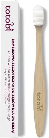 Bambusowa szczoteczka Totobi została stworzona, aby zapewnić skuteczne i delikatne czyszczenie zębów psów i kotów. Dzięki ultra miękkiemu włosiu i wyprofilowanej główce szczoteczka dociera nawet do trudno dostępnych miejsc w pysku pupila. Produkt jest ekologiczny, w pełni biodegradowalny i bezpieczny dla zwierząt.