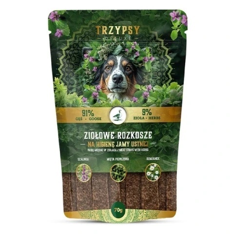🐾 TrzyPsy – Ziołowe rozkosze – naturalna, ziołowa przyjemność, która zamienia codzienną pielęgnację jamy ustnej w smaczną nagrodę.