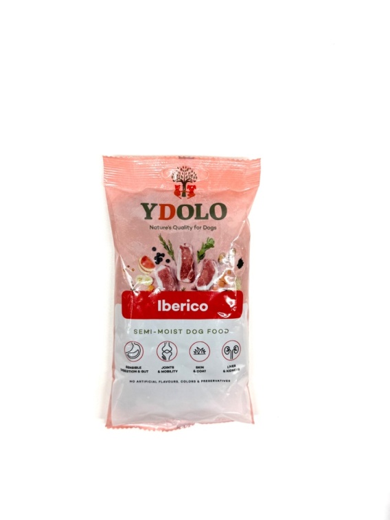 YDOLO Iberico to wyjątkowo miękka, aromatyczna i lekkostrawna karma półwilgotna, przygotowana wyłącznie z 75% świeżej wieprzowiny Iberico – starożytnej hiszpańskiej rasy świń słynącej z doskonałego, wartościowego mięsa. Dzięki unikalnemu procesowi produkcji w niskiej temperaturze, karma zachowuje pełnię smaku i naturalnych składników odżywczych, dbając o zdrowie układu pokarmowego psa i wspierając jego dobre samopoczucie każdego dnia.